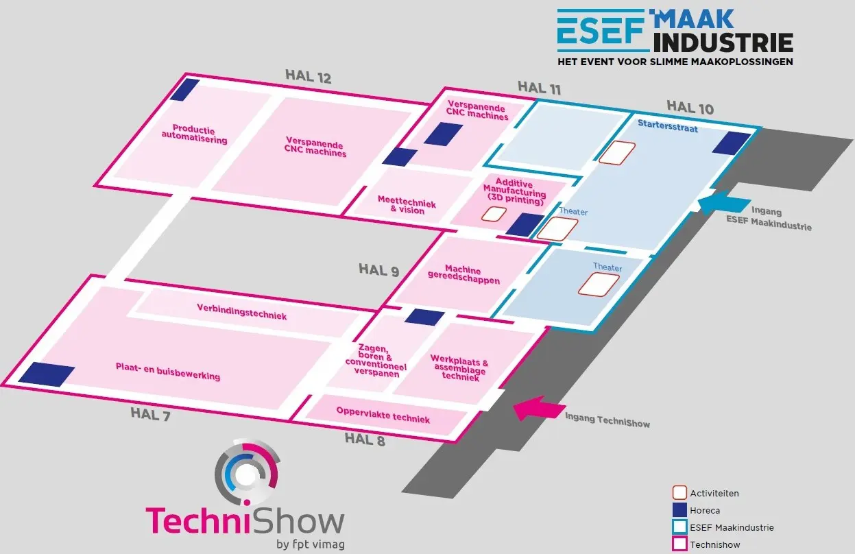 De ingang voor de TechniShow is bij hal 8. ESEF Maakindustrie zal hal 10 als hoofdingang hebben.