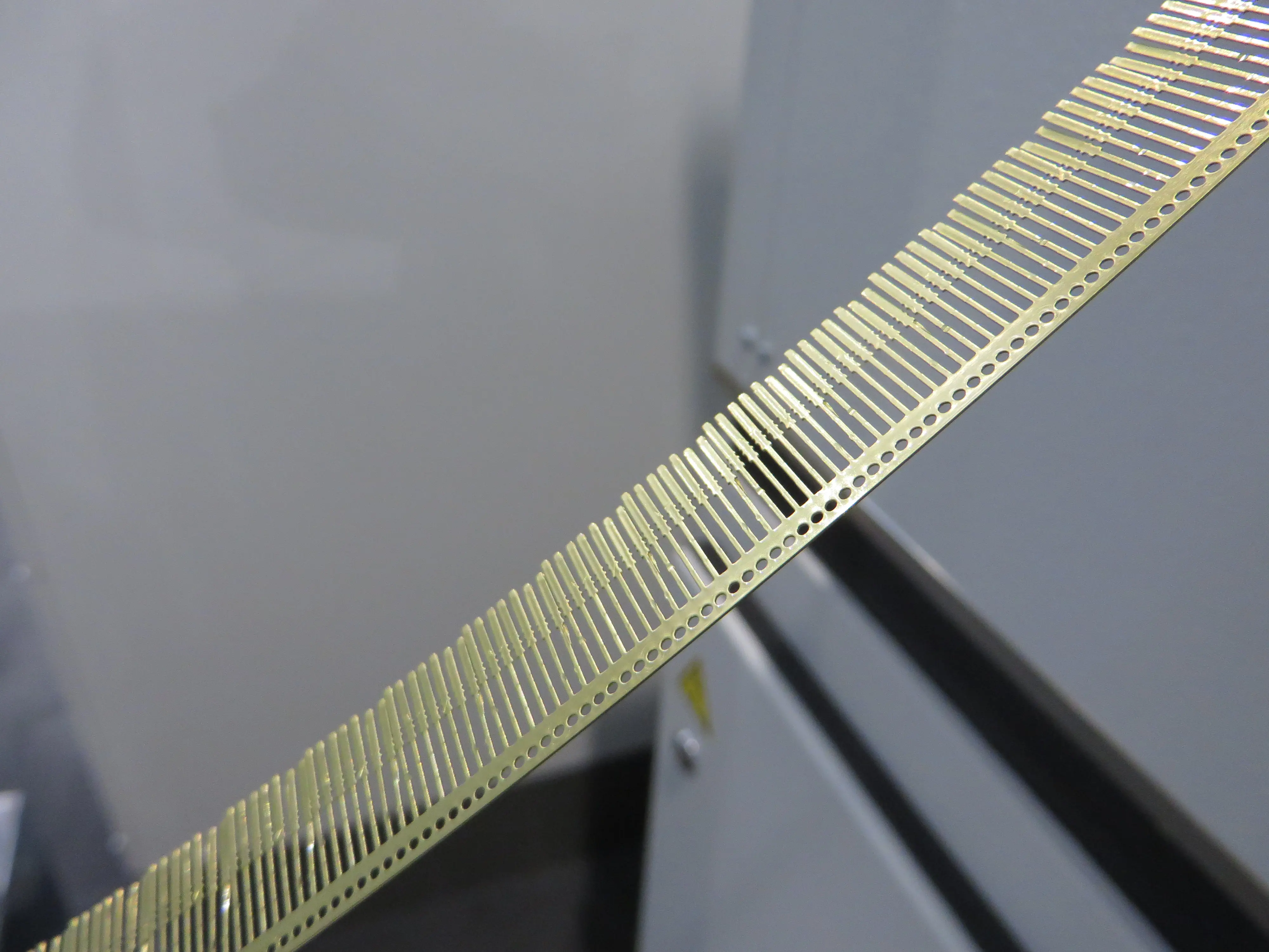 Gedurende de Blechexpo 2016 heeft persenbouwer Bruderer een bijzondere demonstratie verzorgd. Op een snellopende ponsautomaat werden in een zevenvoudig stempel met 2300 slagen per minuut bandmateriaal van 17,5 mm en 0,25 mm dik geponst. Je praat dus 16.100 producten (connector-delen) per minuut.