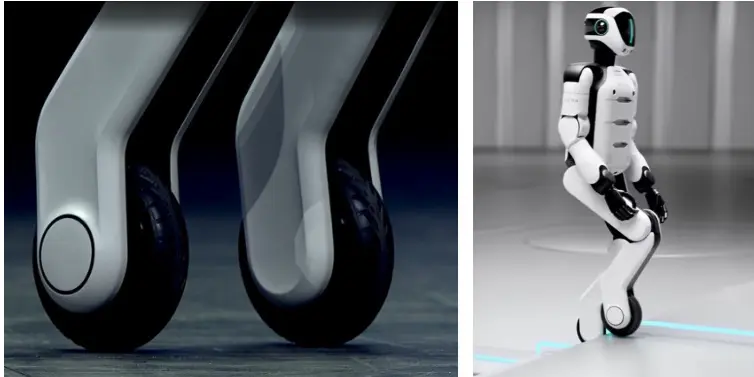 Bij Aeon valt vooral op dat hij 2 afzonderlijke ‘benen’ met wielen heeft waar hij zich mee voortbeweegt. Hiermee kan hij ook stabiel blijven staan en traplopen.