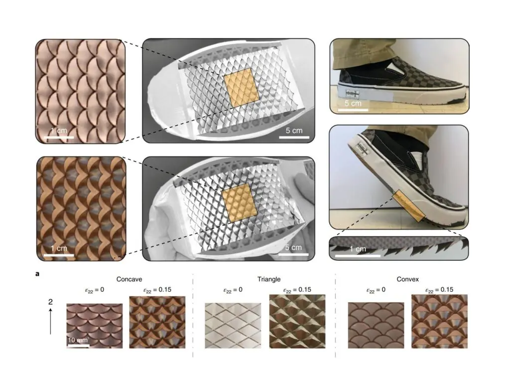 Schoenen waarvan de zolen ‘schubben’ van rvs hebben, beschermen tegen uitglijden en vallen op gladde ondergronden. Dergelijke schubben ontwikkelen bij het buigen van de zool namelijk hogere wrijvingskrachten (dus meer grip) in de voorvoet en loodrecht op de bewegingsrichting. Naar analogie van de Japanse papiersnijkunst worden deze antislipzolen kirigami genoemd.
